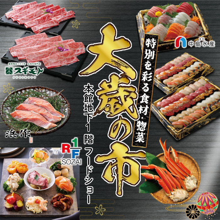 ※12月31日(水)本館地下1階 食品街は午前8時~午後6時・ほか全館は午前9時~午後6時本館地下1階 フードショー