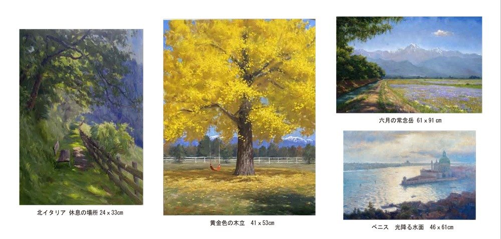 催物情報一覧に戻る 金子琢磨 油彩画展~イタリア・信州・風景の架け橋~ 開催期間 10月30日(木)~11月5日(水) ※最終日は午後3時閉場 開催場所 別館シェルシェ4階 美術サロン ※入場無料 アメリカ、イタリアで絵画を学び、現在拠点である信州安曇野やイタリアなど、 新しい風景を求めさまざまな土地で出会い心を動かされ描いた作品20余点を展示いたします。 どうぞこの機会にご高覧くださいませ。 《会期中作家来場》 催物情報一覧に戻る