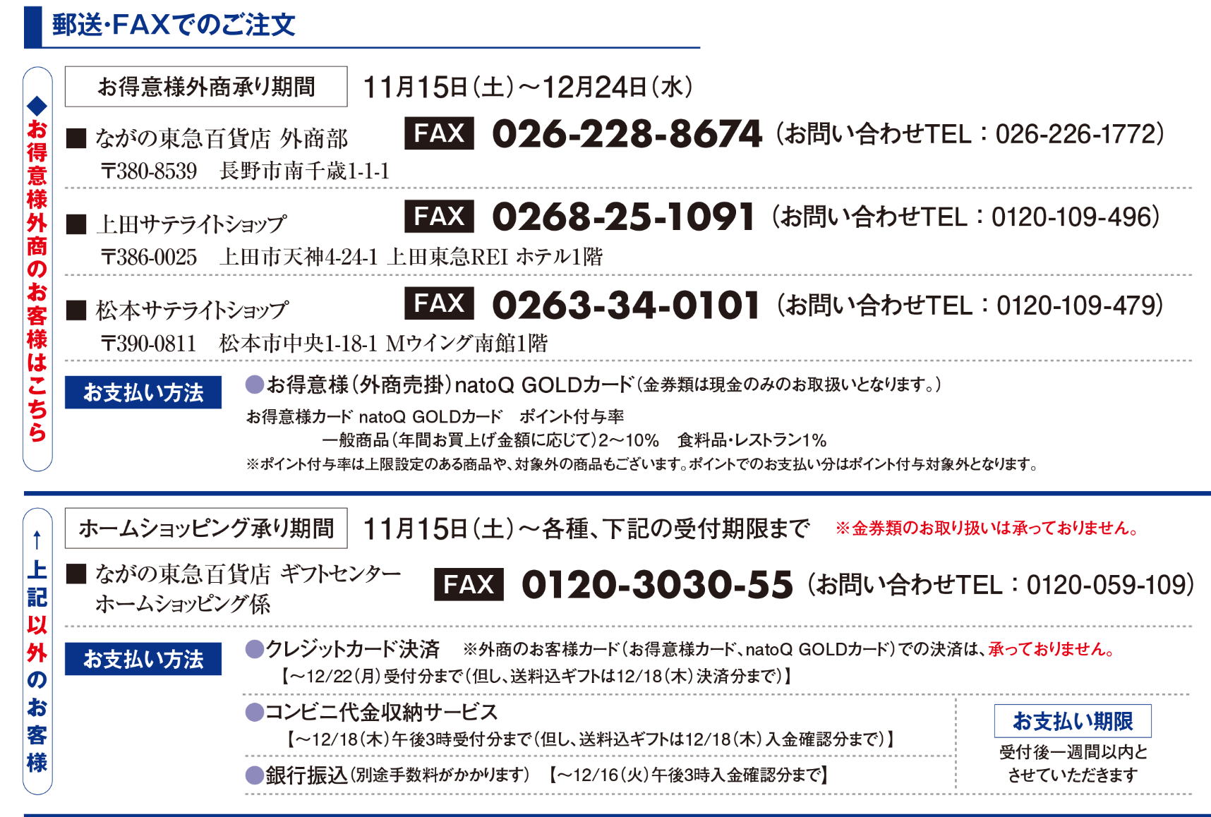 | 開催期間 | ◆ギフトセンター:11月15日(土)~12月24日(水) ※最終日は午後3時閉場 ◆ネットショップ:11月8日(土)~12月15日(月) |
