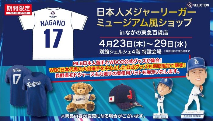 ながの東急にMLB日本人選手とWBCの公式グッズが集合!