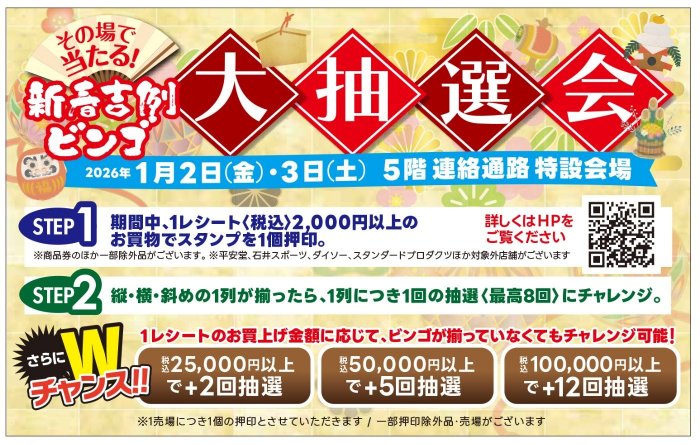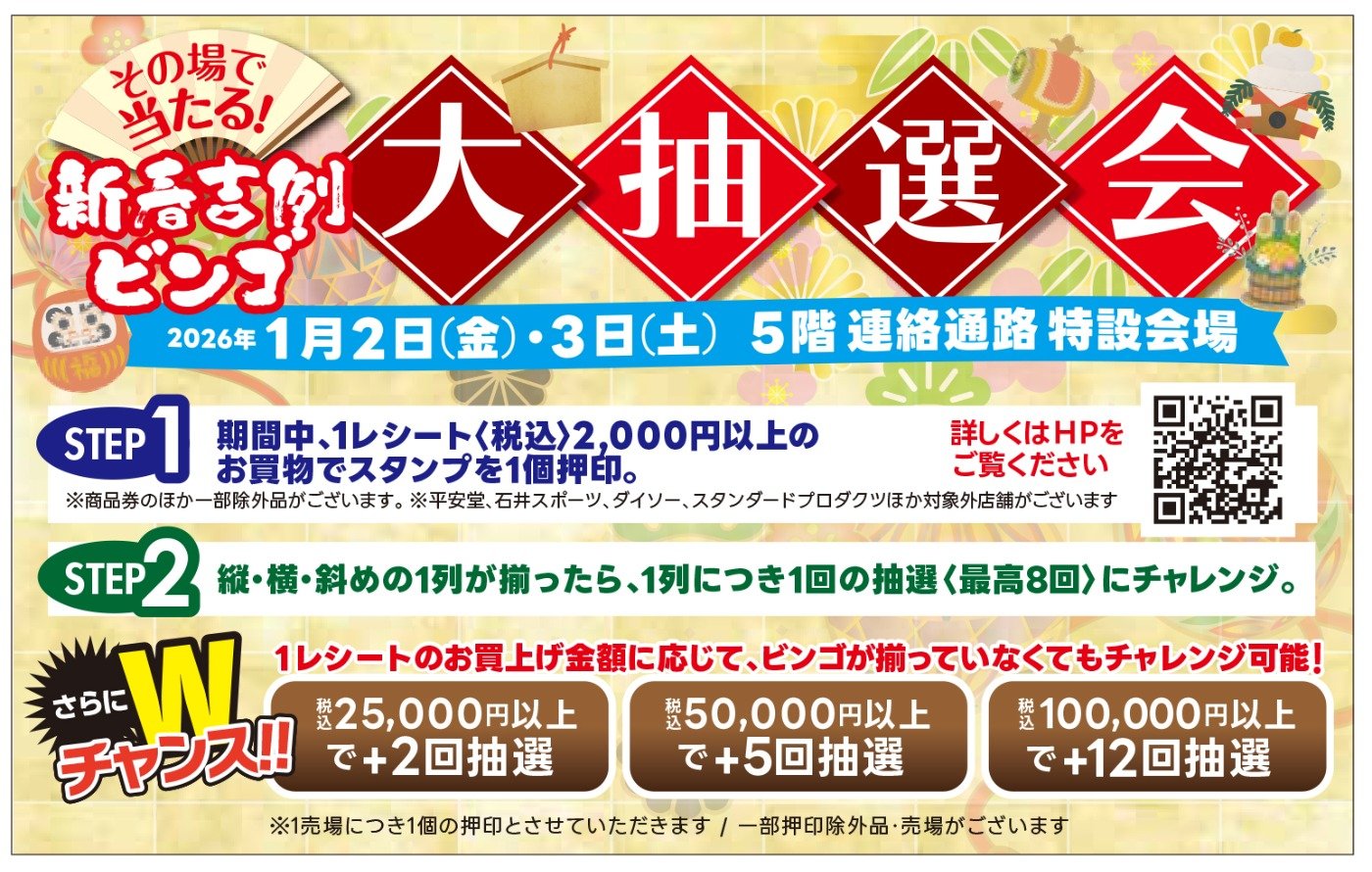 | 開催期間 | 1月2日(金)・3日(土) ■クーポン券受入期間:1月2日(金)~31日(土) |