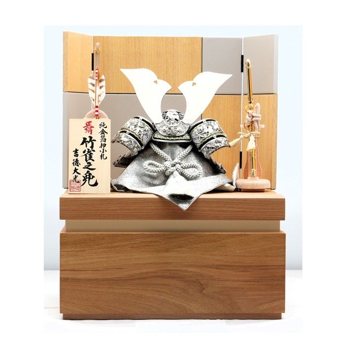 <吉徳作>プラチナ箔押し竹雀兜収納箱飾り