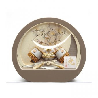 ⑤場所を選ばない、優雅な円形ケース入り兜飾り