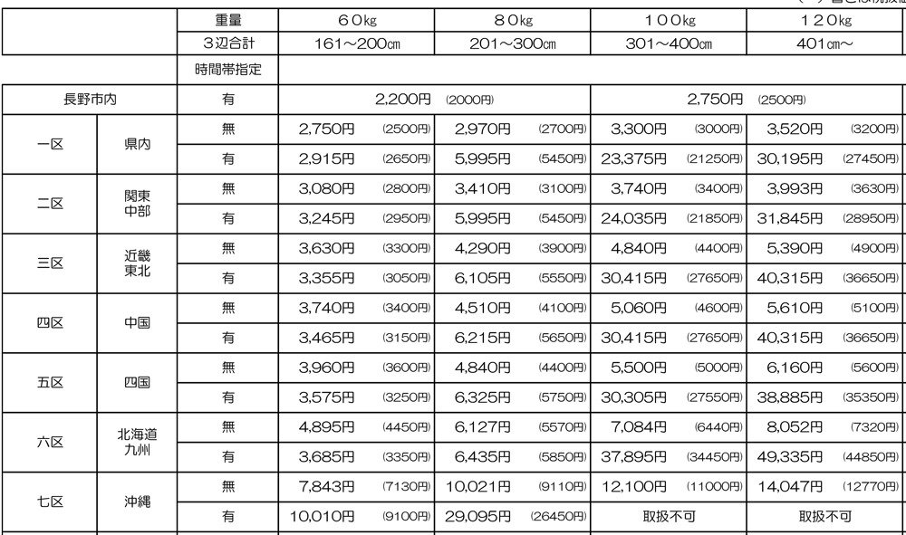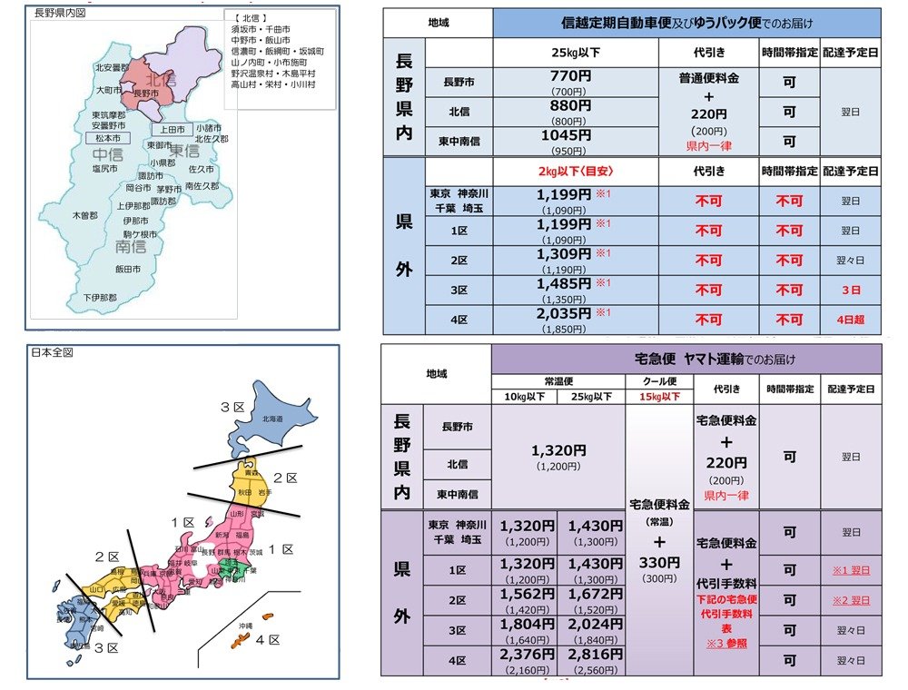 昨今の配送を取り巻く環境の変化を踏まえ、誠に勝手ながら配送料金を下記の通りに改定させていただきます。