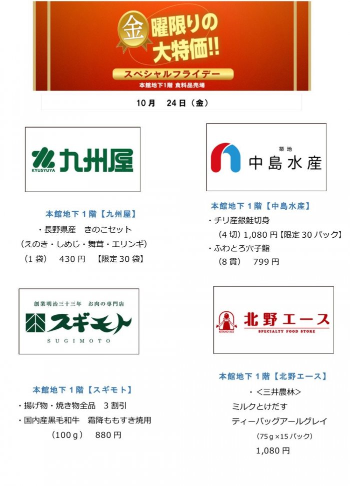 - この他にも一部営業時間が異なる売場がございます。詳しくはお問合せください。