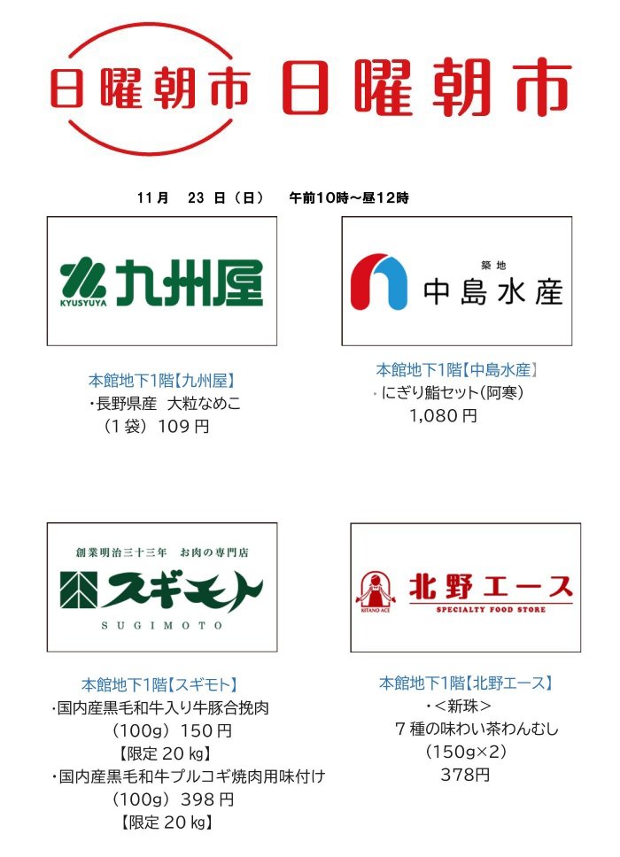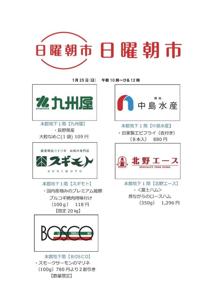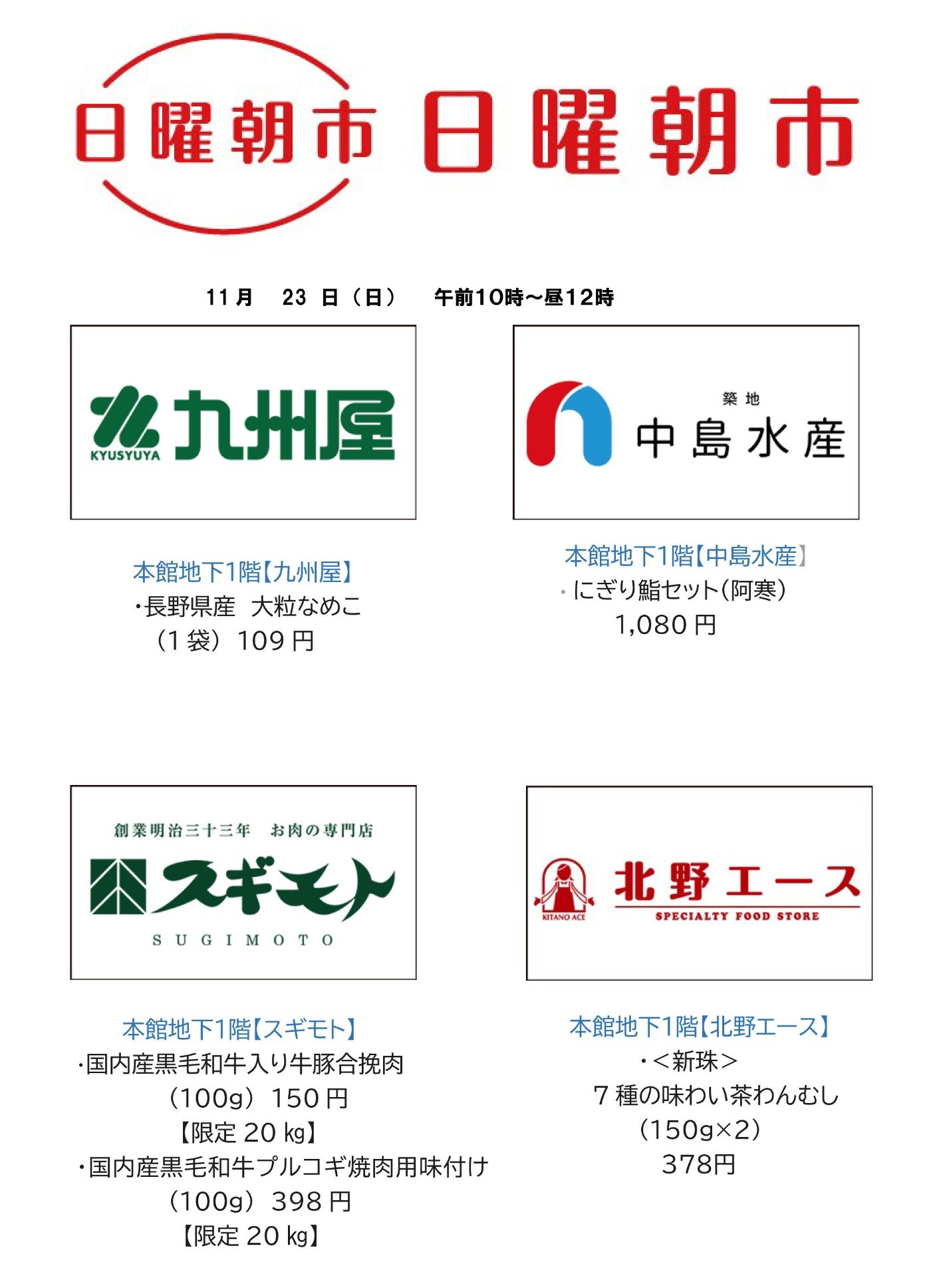 - この他にも一部営業時間が異なる売場がございます。詳しくはお問合せください。
