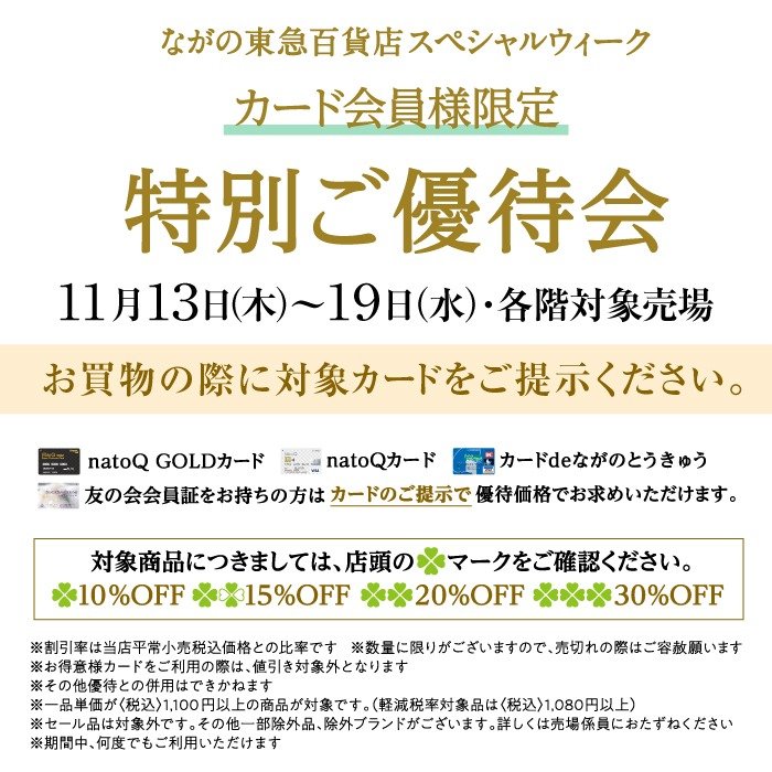- この他にも一部営業時間が異なる売場がございます。詳しくはお問合せください。
