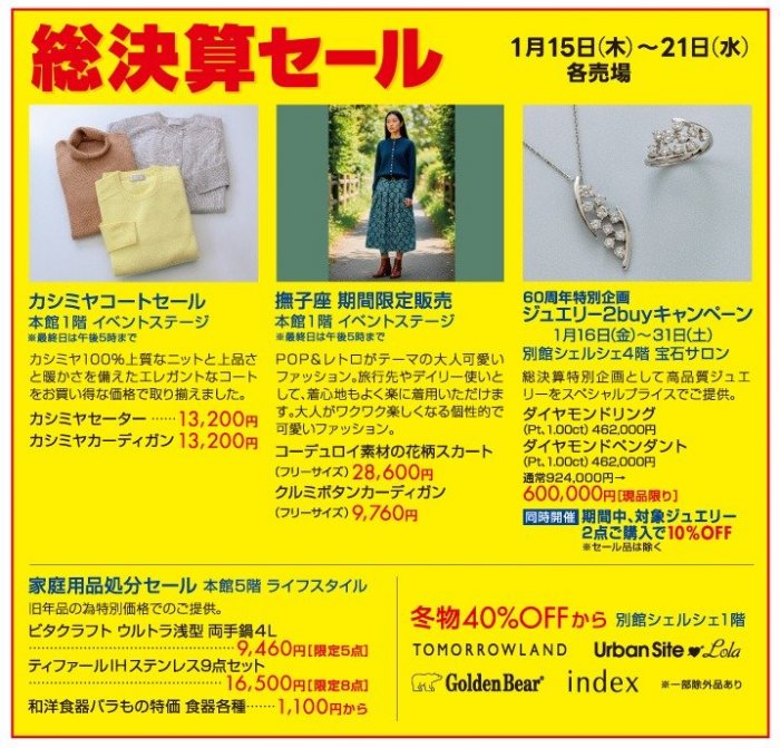 - この他にも一部営業時間が異なる売場がございます。詳しくはお問合せください。