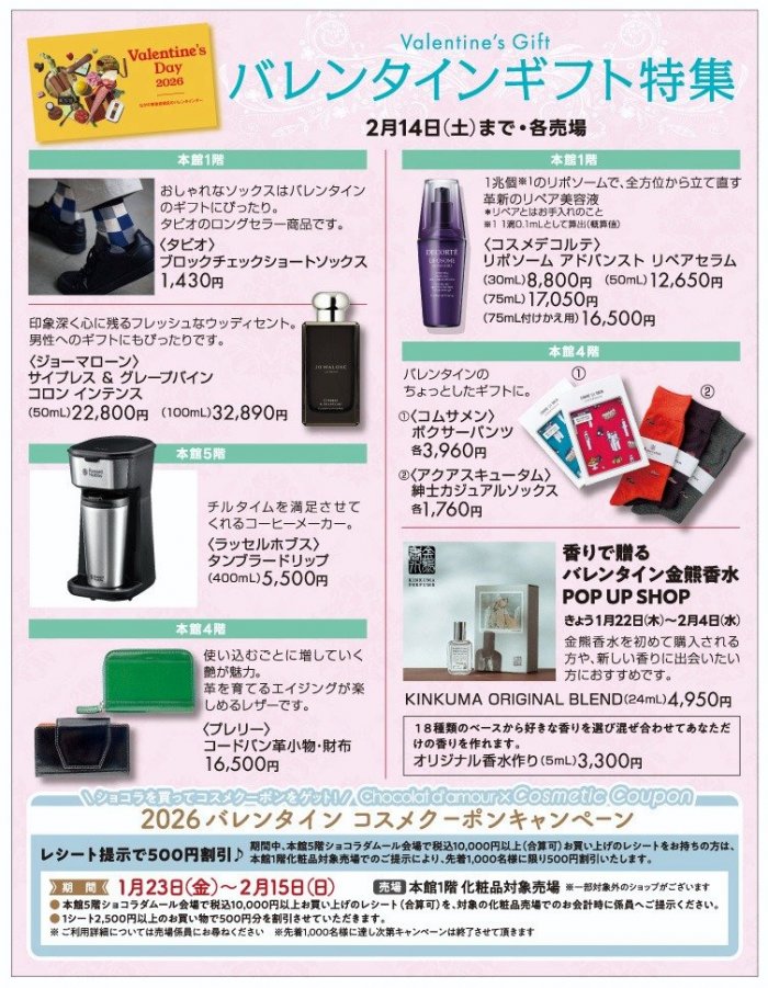 - この他にも一部営業時間が異なる売場がございます。詳しくはお問合せください。